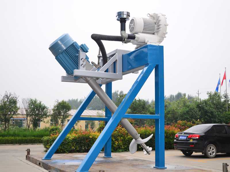 電動(dòng)機(jī)帶動(dòng)螺旋槳旋轉(zhuǎn),高壓旋渦氣泵使得空氣通過(guò)進(jìn)氣管進(jìn)入空氣進(jìn)孔達(dá)到螺旋槳,使得其水混合造成微小氣泡,汽水混合物水平、豎直方向離開(kāi)螺旋槳,達(dá)到有效混合和向水中曝氣。